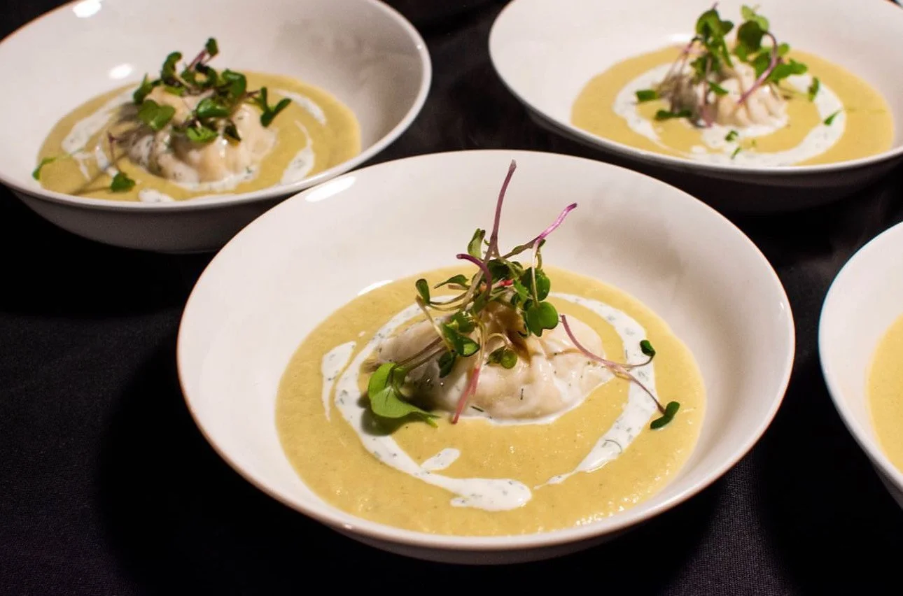 Dungeness crab dumpling, celery fennel bisque.
